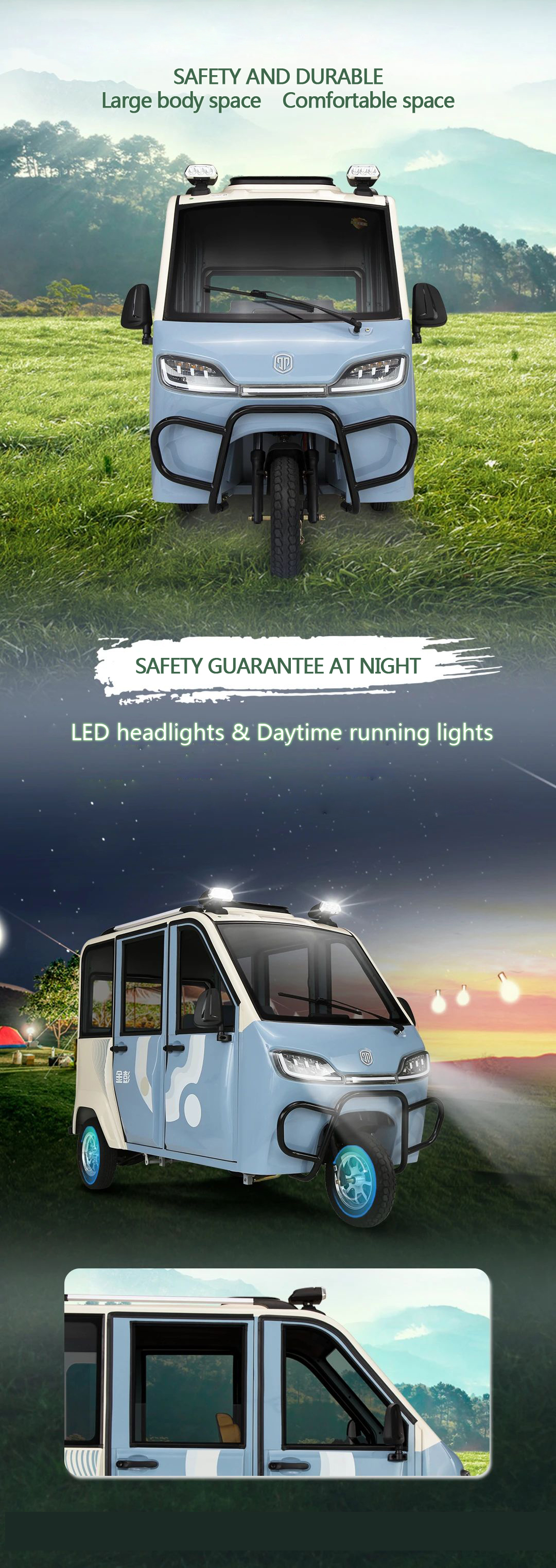 The Jinpeng HT electric passenger tricycle combines aesthetic appeal. cutting-edge technology. and robust safety features. It is the perfect choice for those seeking a reliable. stylish. and eco-friendly mode of transportation for daily commuting. Experience the Jinpeng HT and enjoy a new level of comfort. safety. and convenience on your journeys.