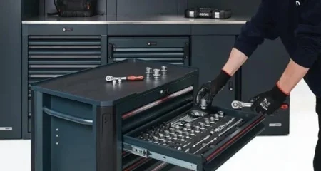 This version of 13 drawer tool chest from NEXT S15 comes with a wide range of high quality tools (wrench sockets, spanners, screwdrivers, pliers and much more). No matter whether for your hobby room, workshop or garage, this tool cabinet is a perfect solution. Thanks to the integrated lock, 13 drawers can be locked at once which prevents the drawers from opening accidentally when the chest is being moved. The robust countertop on the tool trolley will be a great spot to keep frequently used tools within reach. Double paneled walls, body reinforcement and ball-bearing drawer slides for smooth action.